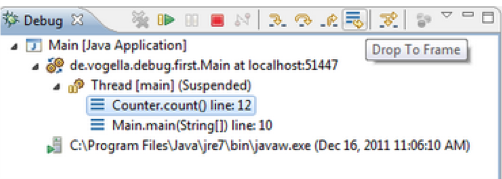 Eclipse enables users to choose any frame (level) in the call stack during the debugging process and set the JVM to start again from the selected level. In simple words, it allows you to re-run a part of your program.